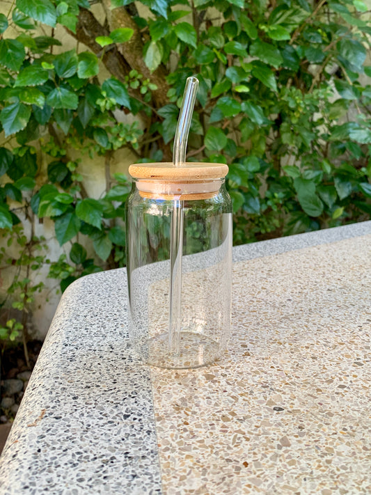 Minimalistic Glass Tumbler with Bamboo Lid & Glass Straw